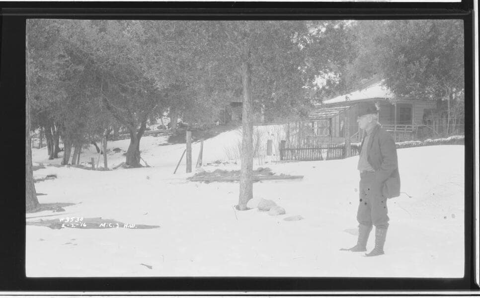 Mill Creek 1, 2&3 Powerhouse - Mill Creek #3 headworks cottages and yards in the winter snow from main road.