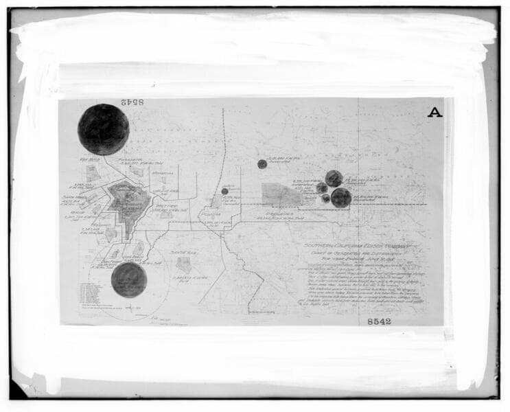 C1.3 - Maps - Chart A Hoxie Series - used at hearing before State RR Commision. - map showing Southern California Edison's Electric Generation and Distribution for year ending June 15, 1915