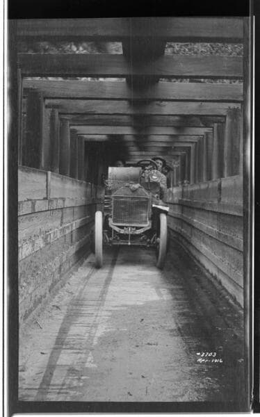 Santa Ana River #1 Powerhouse - Vertical shot of small Ford, narrow track truck working in tunnels at SAR 1
