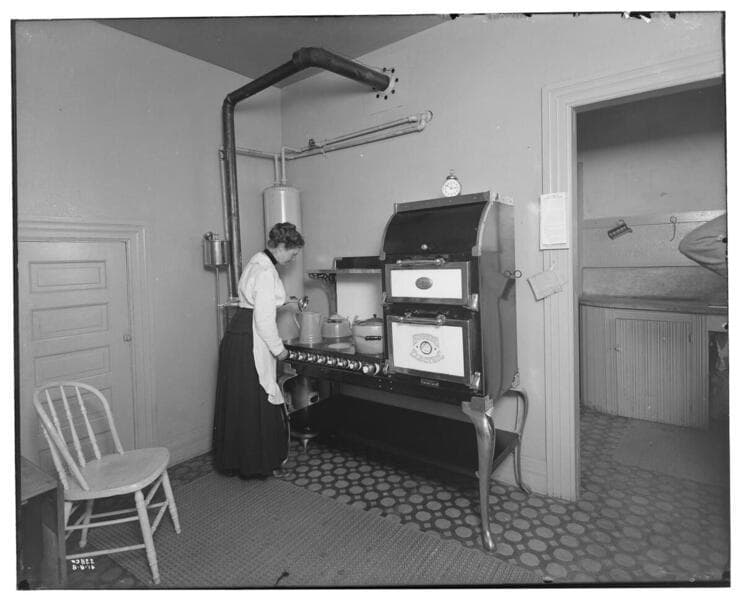 A3.3 - Ranges - Woman cooking on electric range at home of Lieut. Governor Wallace.