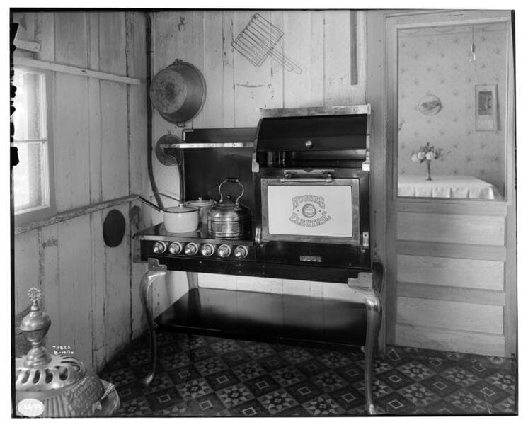 A3.3 - Ranges - Electric range at home of Lieut. Governor Wallace [new range set-up next to old wood burning range.]
