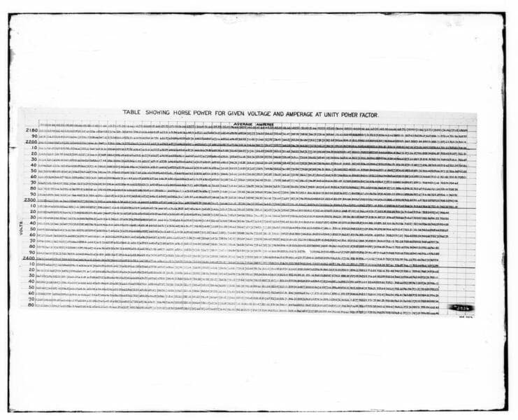 C1.1 - Charts miscellaneous - Table of horsepower for given voltage and amperage at unity power factor
