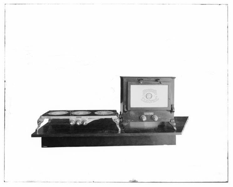 A3.3 - Ranges - Hughes, Electric Range with woman cooking - Moore home, Long Beach