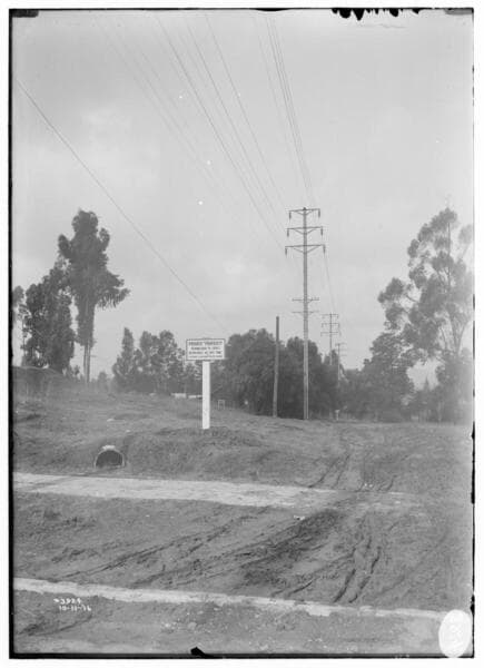 Los Angeles #3 Steam Plant - A trespass sign on an Edison lot on Soto Ave. near Covina Junction. The sign reads: PRIVATE PROPERTY: PERMISSION TO CROSS REVOCABLE AT ANY TIME SO. CALIF EDISON CO.