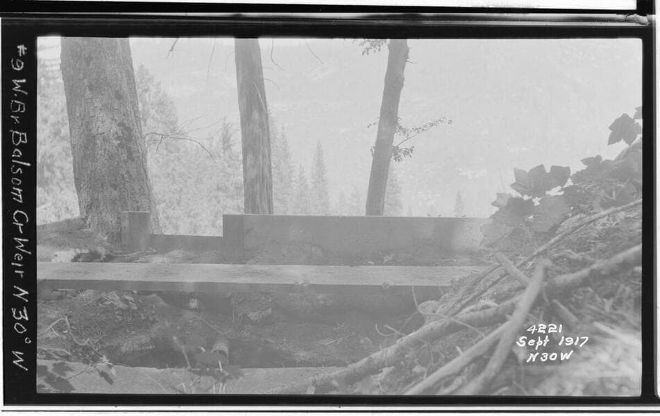 Big Creek, Miscellaneous - Sohier's investigation of future developments of Big Creek Project. - Balsam Creek Wier upstream side [additional notes in Album #95]