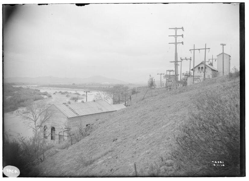Pedley Substation - from above [structure on right could be the forebay for Pedley Powerhouse down near the river.