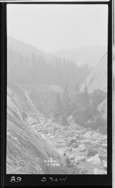 Big Creek Scenery - Sohier's investigation of future developments of Big Creek Project. - River through granite canyon in forest.
