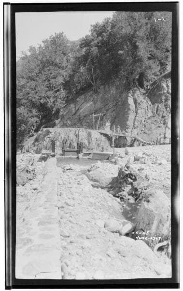 Mill Creek 1, 2&3 Powerhouse - Mill Creek #3 headworks south end of rubble wall F.B