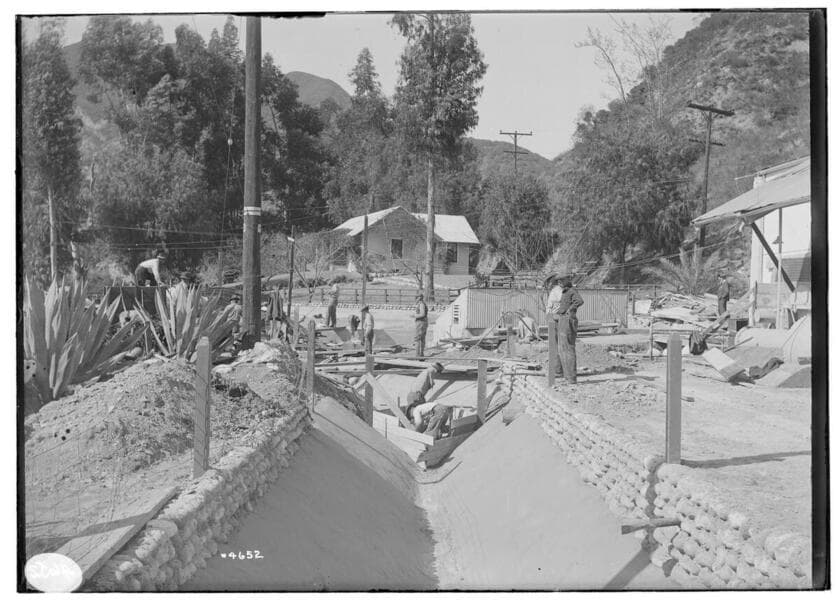 Azusa Powerhouse - Reconstructing Tail Race and Canal. Plant acquired by SCE in 1917.