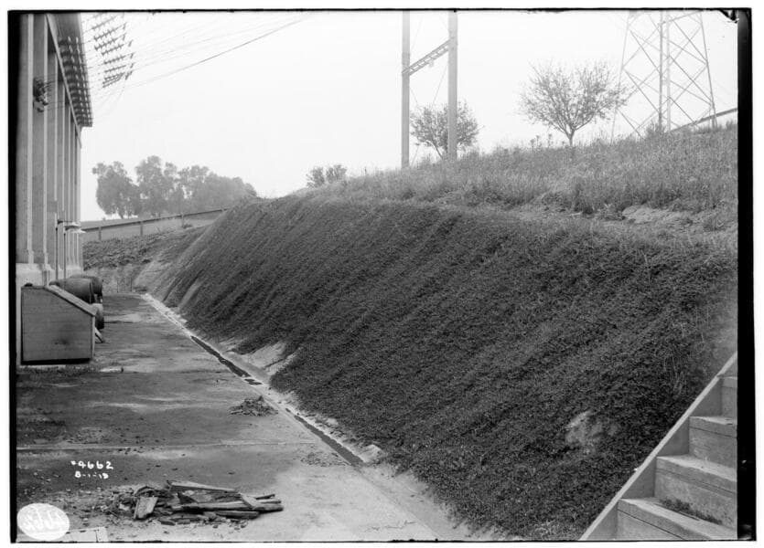 Newmark Substation - showing rose bushes on bank.