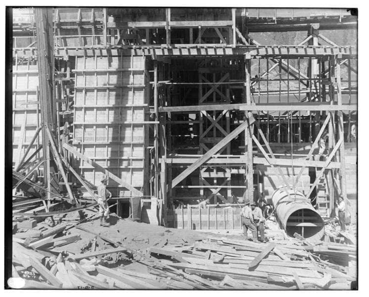 Big Creek Huntington Lake Dams - Job H-79 No 85 - West end of Dam #1, S. Siphon spillway forms etc.