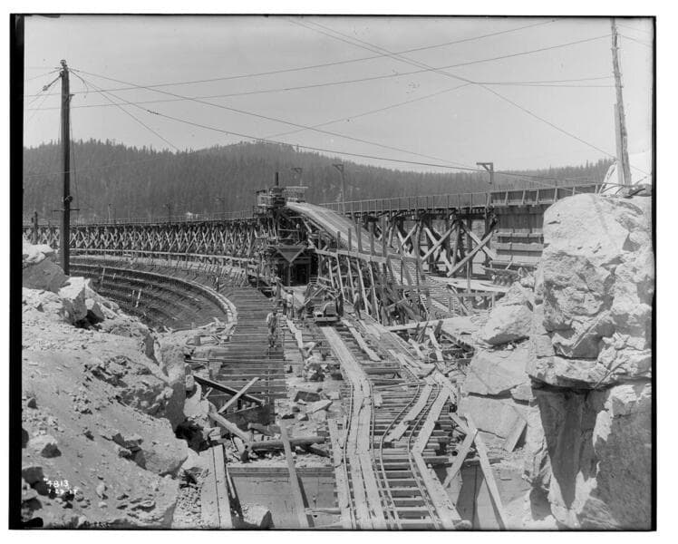 Big Creek, Huntington Lake Dams - Pouring first concrete.