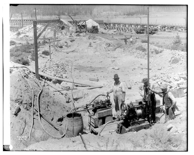 Big Creek Huntington Lake Dams - Diamond drill in use at Dam #3. [Dam 1A is noted on plate.]