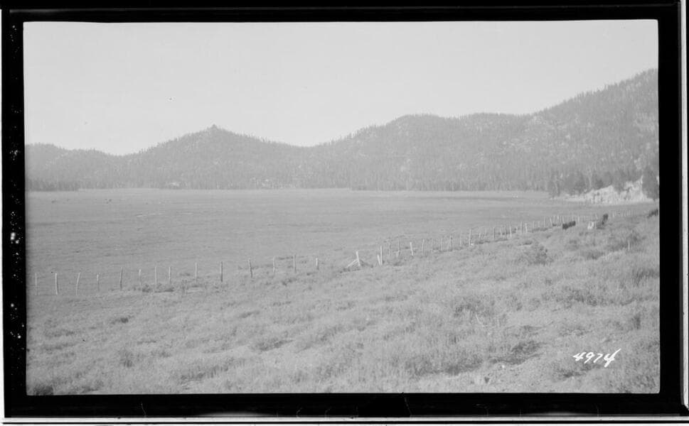 Big Creek Huntington Lake Dams - Huntington Lake - upper end [logged empty reservoir with cut, stripped logs laying on ground]