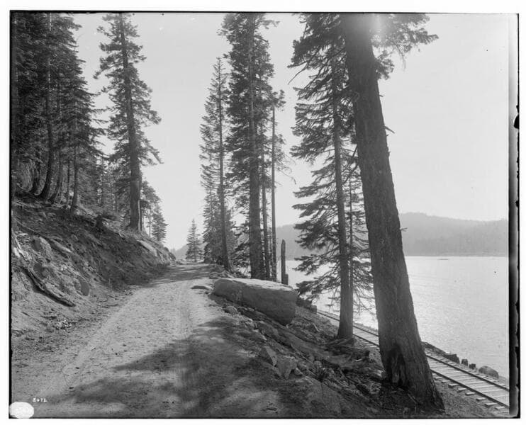 Big Creek Huntington Lake Dams - Road and lake from above Dam #3.