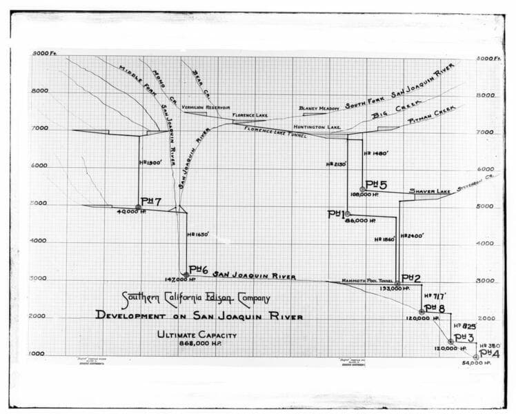 C1.3 - Maps - Profile map of the "Ultimate Projected" hydro-electric development on the San Joaquin River for Edison's Big Creek Project