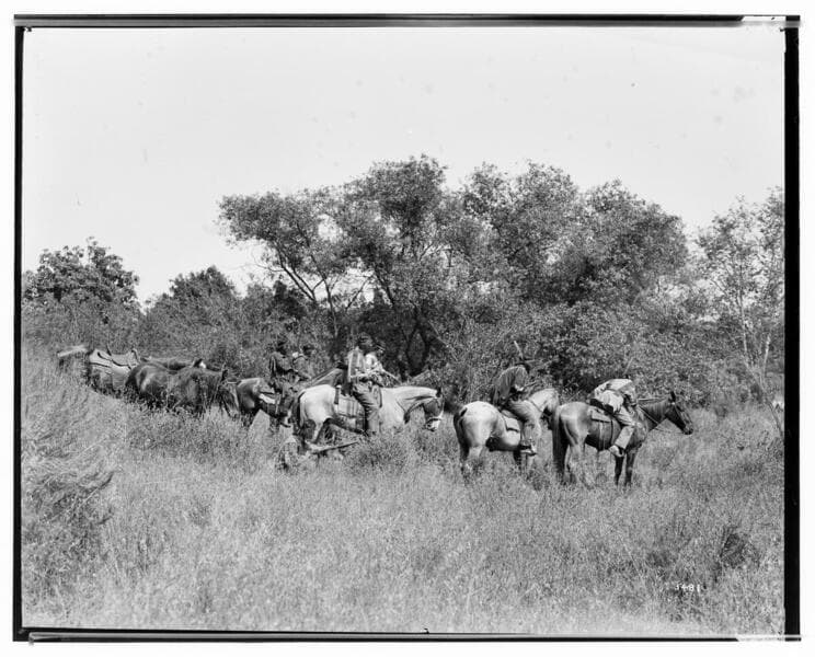 P1.1 - Group Portraits - National Electric Light Association - Arriving delegates at Santa Fe depot in Pasadena are arrested by cowboys and transported in a stagecoach to the Huntington Hotel.