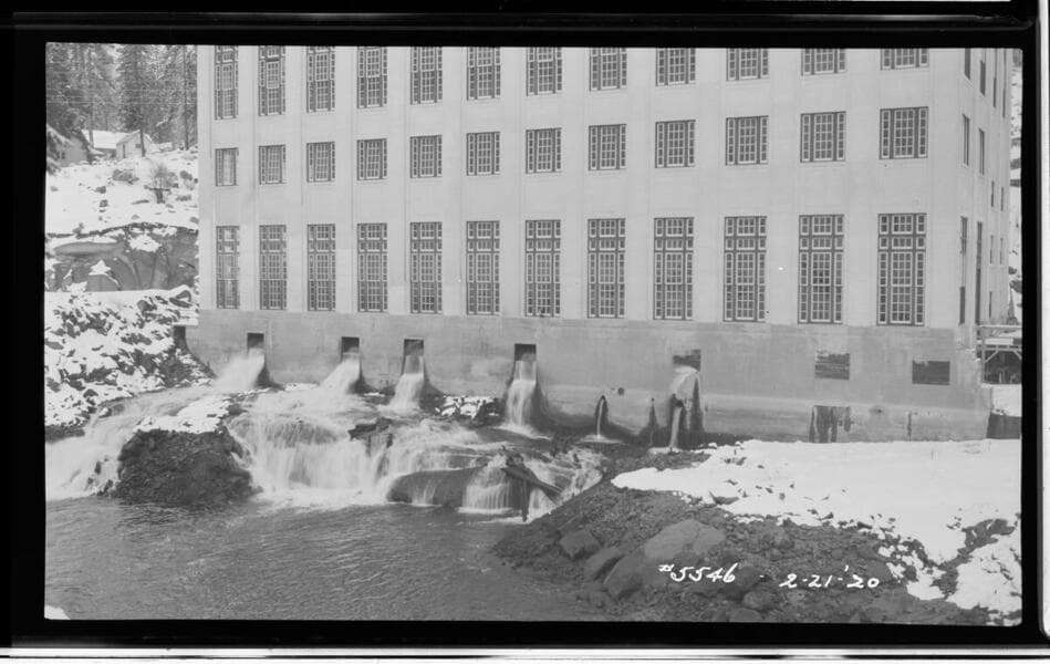 Big Creek Powerhouse #1 exterior, showing tailrace.