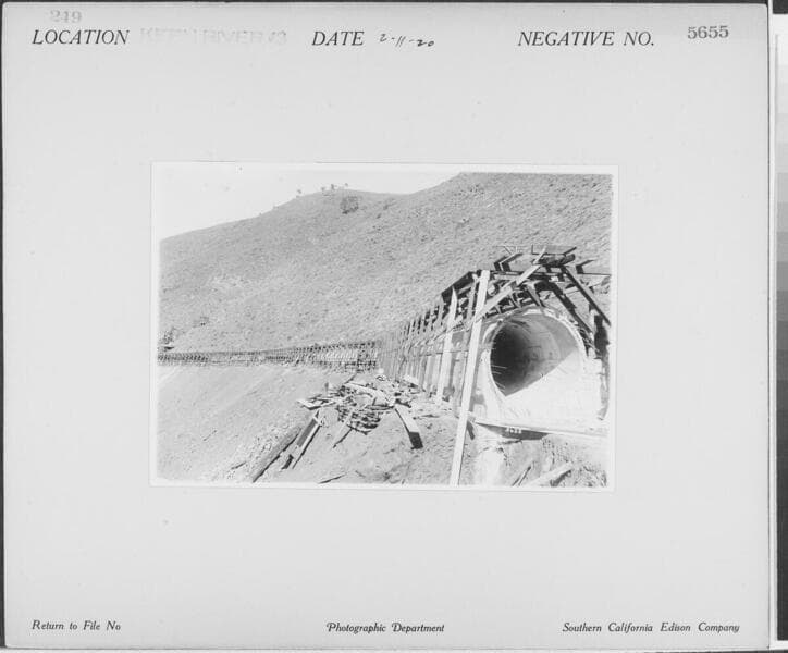 Kern River No. 3 - Flume [empty] between Tunnels 19 & 20 showing etched concrete.