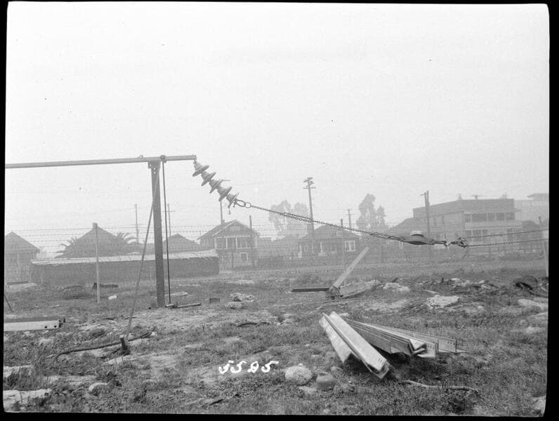 T2 Testing - An insulator test showing 4000 lb. pull. [Probably at the test department at the Fourth Street General Office Building].