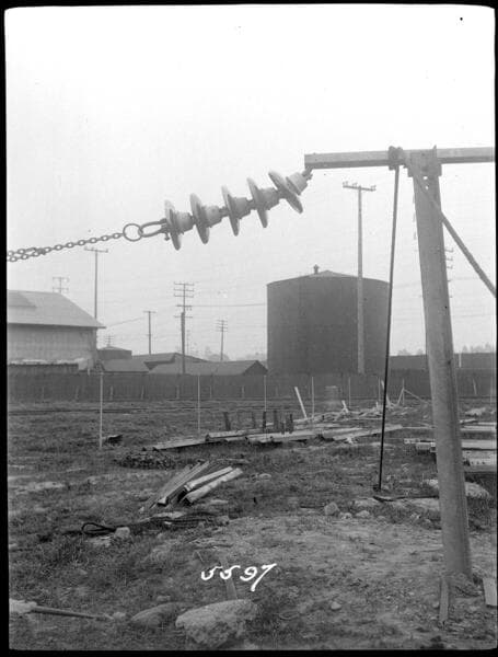 T2 Testing - An insulator test showing 4000 lb. pull. [Probably at the test department at the Fourth Street General Office Building].