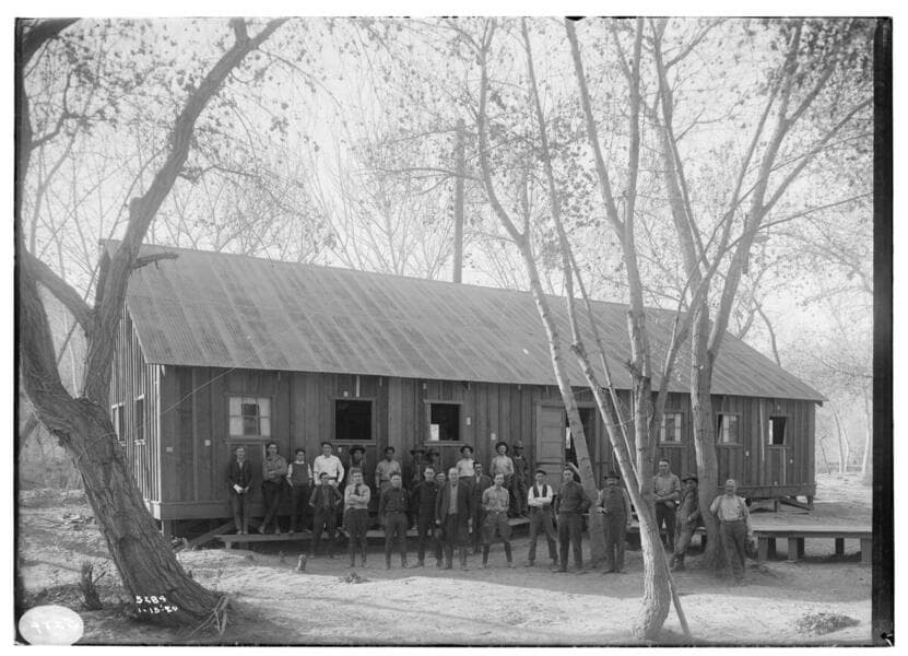 P1.1 - Group Portraits - Kern River #3 - Group at Mess Hall Picture Show.
