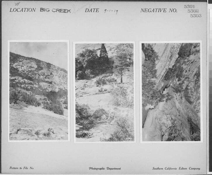 Big Creek Scenery - Reconnoissance of reservoir sites on middle fork San Joaquin River. Flowline North Fork [two added shots (5332 and 5333) on same Photocard]