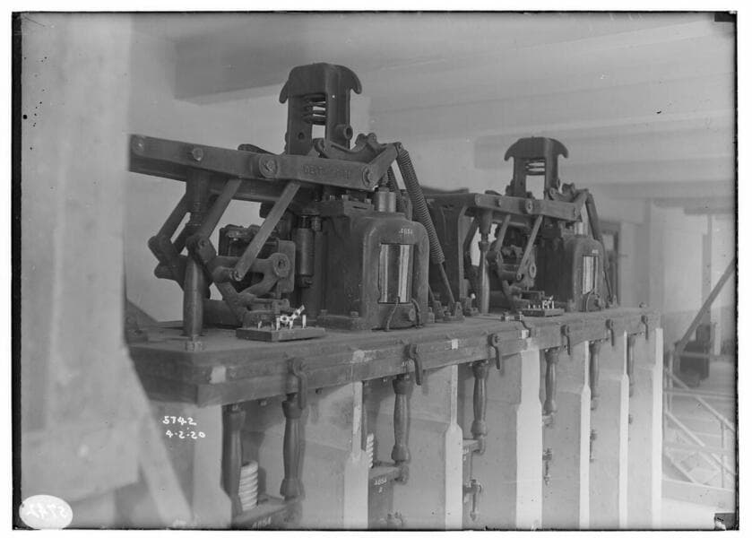 Photographs of Powerhouse 2 and 2A, Part Two. Views of auto transformers, substation, new 6600 V line, new bridge for powerhouse extension, Unit No. 4 with direct connected exciter, constructing new Unit No. 4, 150kV - 220kV Bushings, switchboard, installation of new Unit No. 4 penstock, concrete plant, incline batch cars, stand pipes, Unit No. 3 foundation, Unit No. 3 penstock install, valve house modification, rock crushing plant, Johnson Valve, assembly of new Unit No. 3, auto circuit breakers, 150kV Oil Switch, new hoist, autotransformers, and 11kV equipment, new Bus Bar installation, Governor No. 4; Camp No. 7 - telephone exchange, cottage, machine shop, warehouse, mess hall construction, sawmill; Camp No. 5 - forebay construction, batch plant, steam shovel excavating.