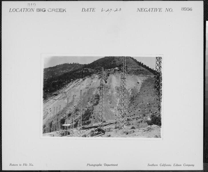 Big Creek Powerhouse #3 - Incline to PH #3; looking southward from Camp #37 construction road. Camp #39 can be seen in the distance.
