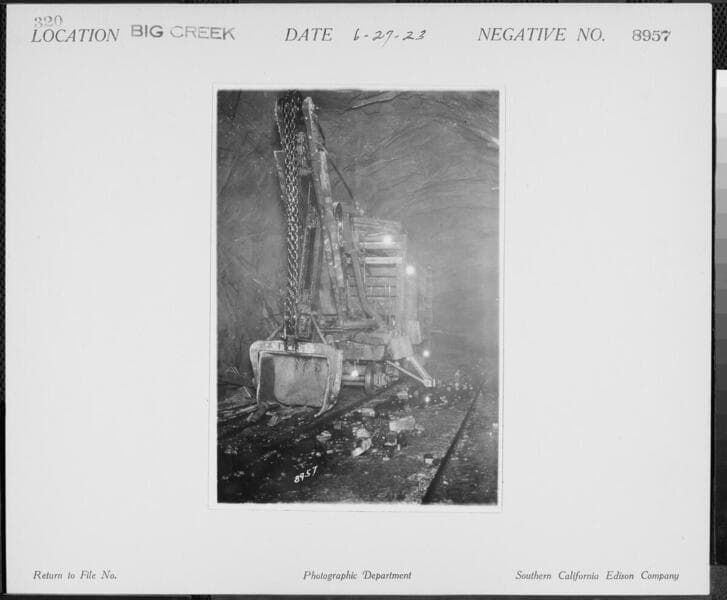 Big Creek, Florence Lake Dam - Marion Steam Shovel working in Tunnel 3, Camp 61