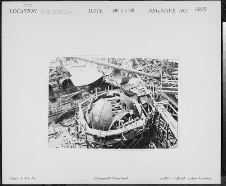Big Creek Powerhouse #3 - Tunnel 3 outlet - assembling manifold.