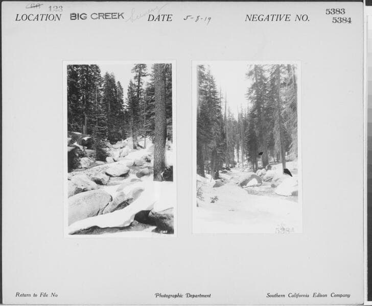 Big Creek Scenery - Reconnoissance of reservoir sites on middle fork San Joaquin River. Flowline North Fork [two added shots (5332 and 5333) on same Photocard]