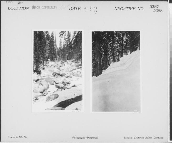 Big Creek Scenery - Reconnoissance of reservoir sites on middle fork San Joaquin River. Flowline North Fork [two added shots (5332 and 5333) on same Photocard]