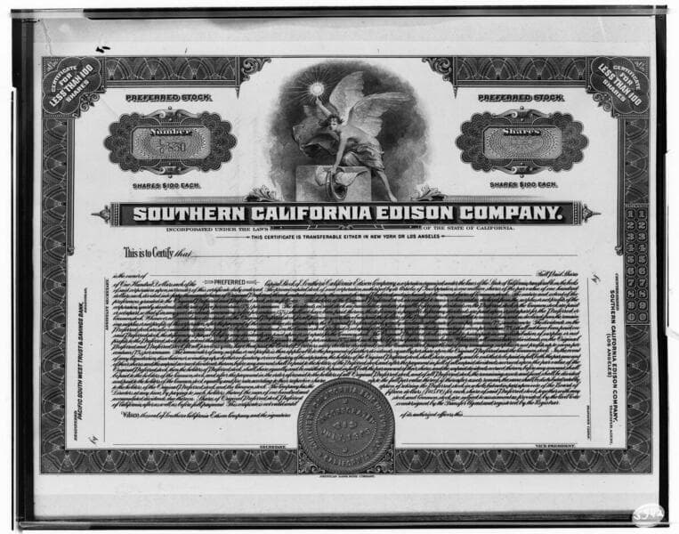 C1.1 - Charts miscellaneous - Edison Common Stock Certificate