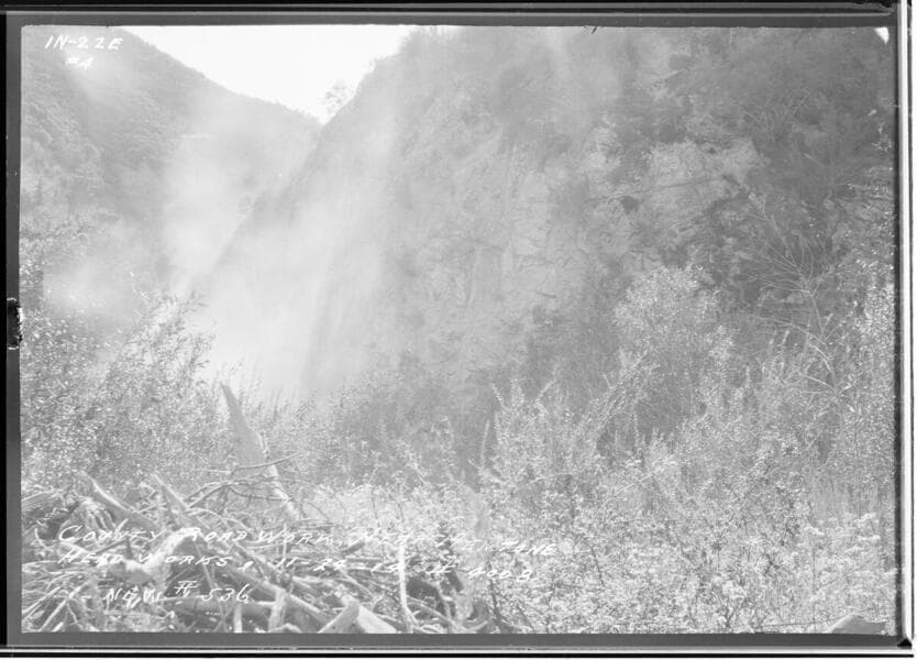 Mentone - Canyon near intake - View looking downstream from point above intake showing obstruction in stream due to county road work.