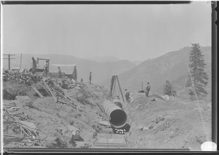Big Creek PH #2 - 8th section of W.P. Co's. pipe in place 11:30 am