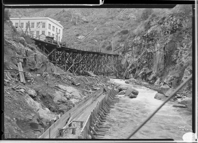 Big Creek PH #2 - Big Creek flume diverting water past Dam 5 construction site