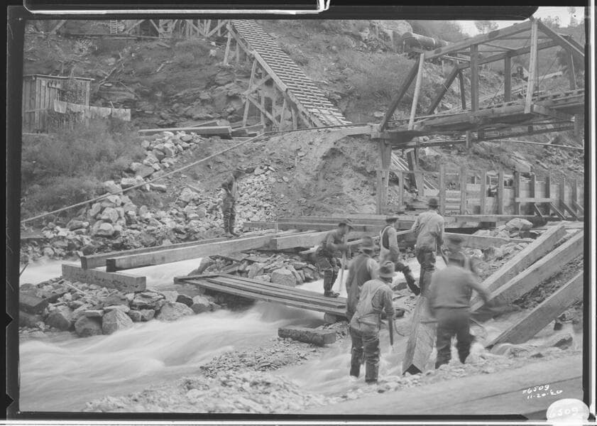 Big Creek PH #2 - Big Creek flume diverting water past Dam 5 construction site