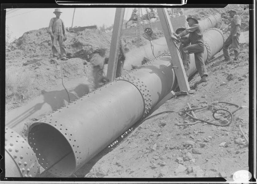 Big Creek PH #2 - Last section (#122) of Kellog Pipe and first 2 sections of W.P. Co's pipe in Penstock ditch.
