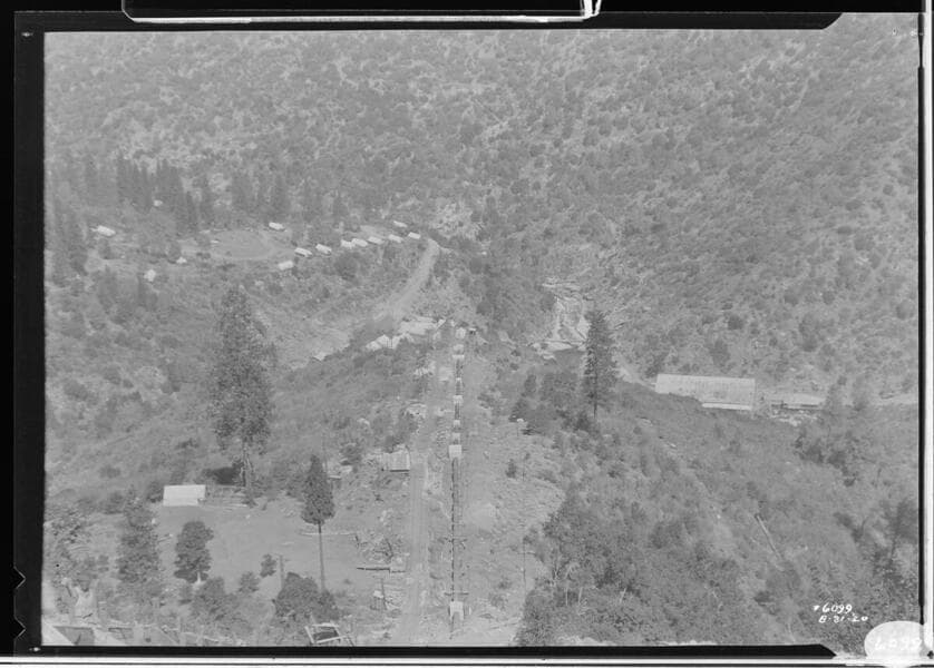 Big Creek PH #2 - Bird's eye view of pipeline to Powerhouse #2, and Camp 1.