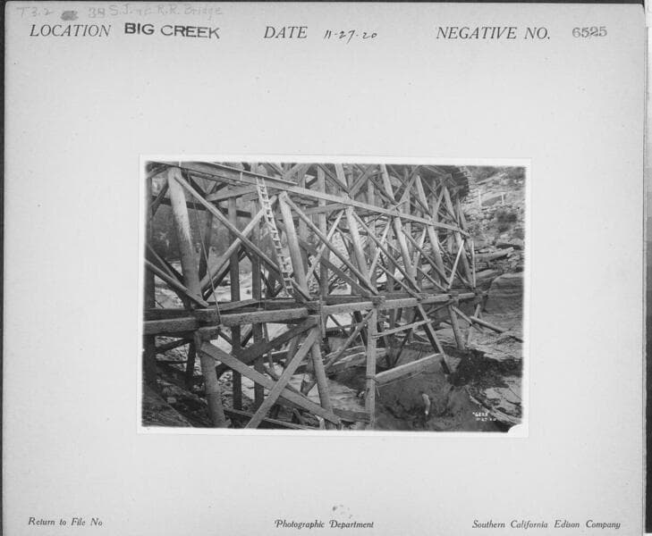 T3.2 Transportation - S.J.&E. R.R. - shot of a trestle bridge for the S. J. & E. RR into Big Creek.