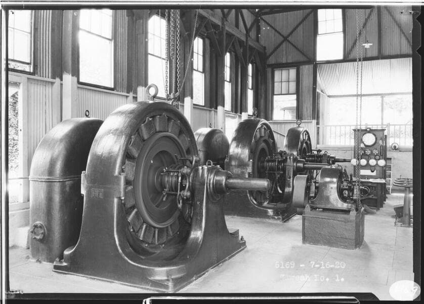 Mill Creek 1, 2&3 Powerhouse - Mill Creek 1 Powerhouse - Interior [shot of generators.]
