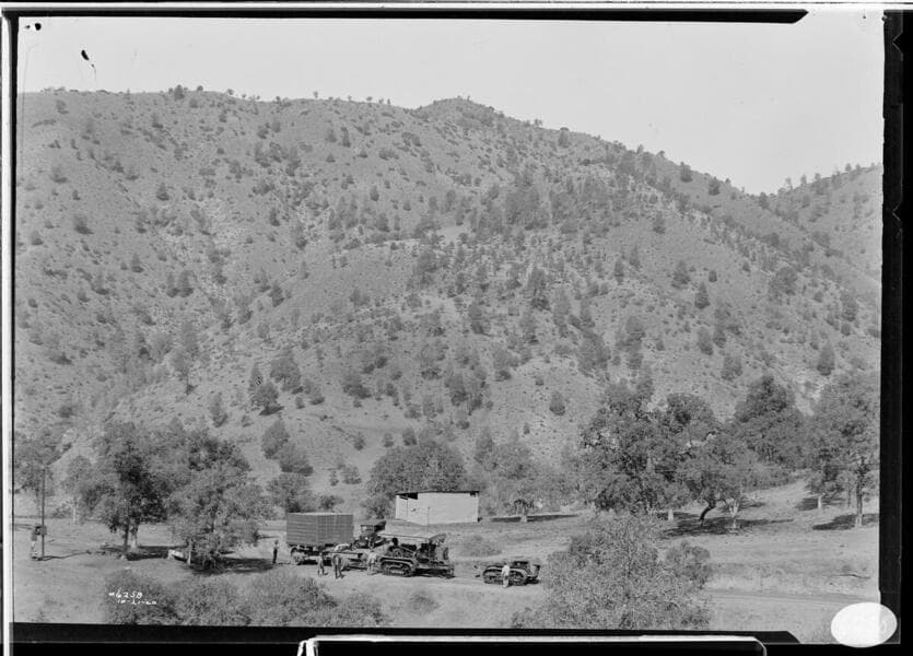 Kern River No. 3 - Transporting first 25 ton section of generator to KR3 site [Cat tractors are pulling trailers]