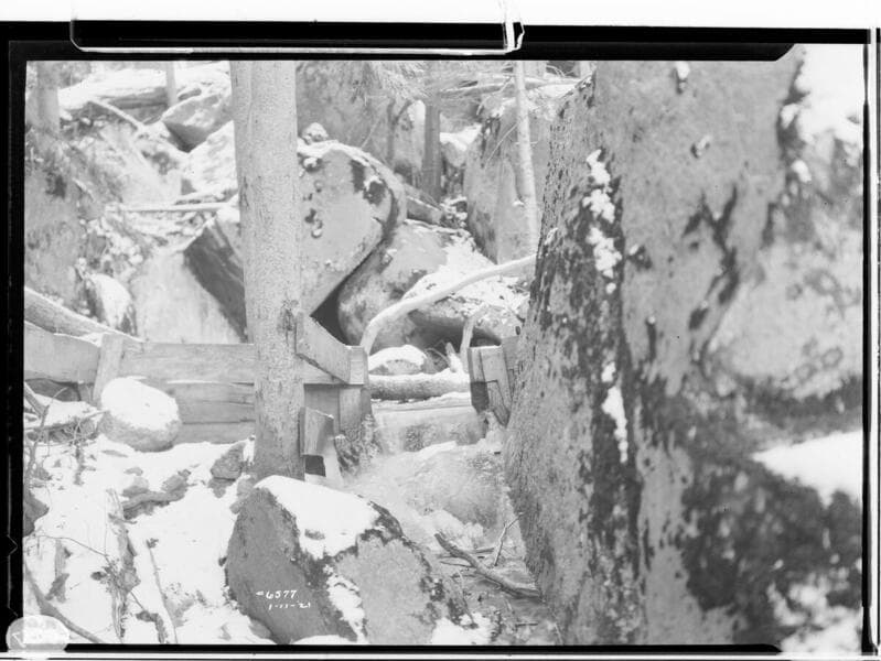 Big Creek PH #2 - Measuring weir at Adit #6, Tunnel 2 near Balsam Creek.
