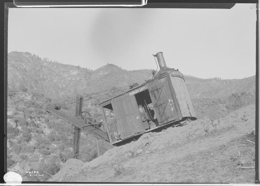 Big Creek Powerhouse #8 - Marion steam shovel excavating new road to Powerhouse 3