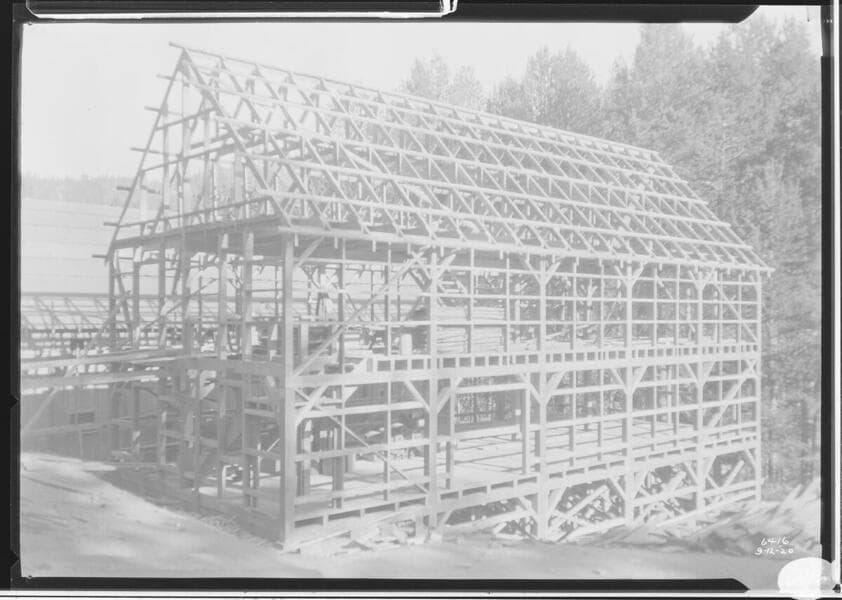 Big Creek, Florence Lake Dam - Warehouse construction - Camp 60