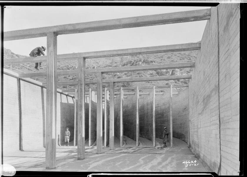 Kern River No. 3 - Men at the KR3 Sandbox showing baffels and gates