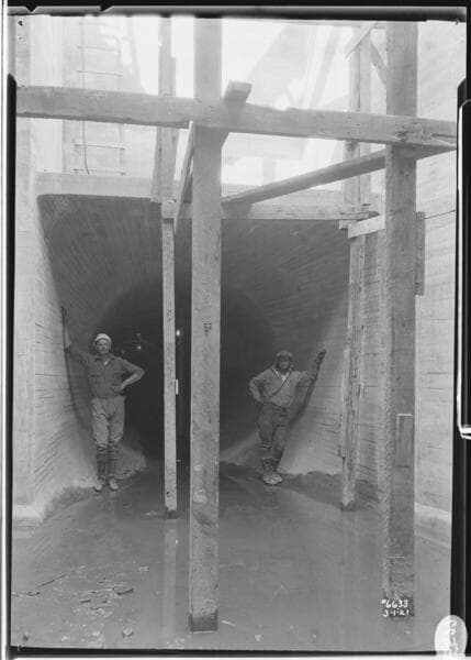 Kern River No. 3 Conduit - Forebay pressure tunnel - wall cut away to install expansion joint (inside view).