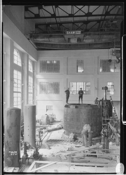 Kern River No. 3 - Interior shot the generator floor at Kern 3 Powerhouse, with two Francis type turbine