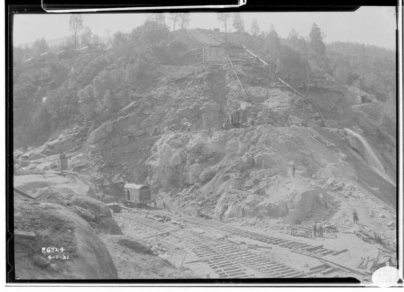 Big Creek Powerhouse #8 - Bird's eye view of Powerhouse #8, penstock and construction camps.